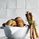 Brush the tops of the rolls with the beaten egg. Lightly sprinkle sea salt over the rolls. Bake until the rolls are puffed and golden and the bottoms and sides are crisp, about 15 minutes. Immediately remove the rolls from the pan. Serve hot or warm. Makes 12 rolls.