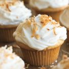 Eating a cupcake brings out the kid in all of us. It’s like having your very own little cake that you don’t have to share with anyone. Topped with a thick layer of luscious cream cheese frosting and sprinkled with toasted coconut, these coconut cupcakes have a tender, moist crumb that literally melts in your mouth.