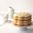 This four-layer cake is easy to make using our celebration cake pans, which produce thin cake layers with scalloped edges. Our coconut cake mix streamlines prep.