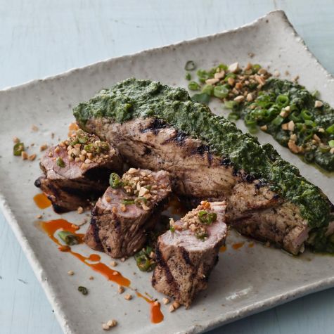 Coconut-Marinated Pork Tenderloin with Green Onion-Peanut Relish