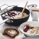 Wake up your morning oatmeal with our dairy-free version, which swaps in coconut milk for regular milk. Maple syrup lends sweetness, while cinnamon adds spice to this comforting meal. Serve the bowls topped with a berry compote and toasted coconut flakes. If you like, stir a little rosewater into the compote to infuse it with a hint of floral fragrance. We call for blueberries and raspberries, but feel free to use whatever looks best at your market, such as strawberries or blackberries. The compote can be prepared up to a week in advance to give you a jump-start on those sleepy mornings.