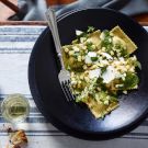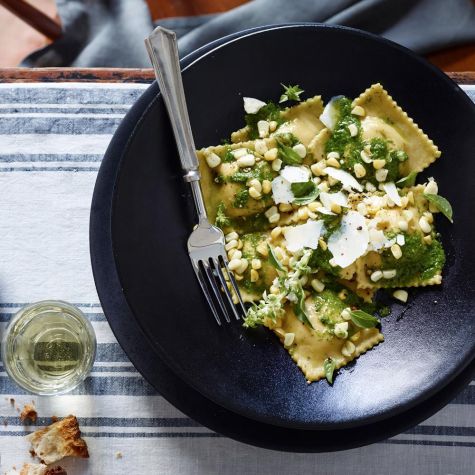 Filled with a simple puree of corn, ricotta and Parmesan cheese, these ravioli come together quickly thanks to our maple ravioli tray, which helps you make a tight seal that will help your ravioli hold up during cooking. However, you can use a ravioli mold or stamp instead, if you prefer, or even make the ravioli by hand, crimping the edges with a fork. A drizzle of freshly made basil oil lends color and bright herbal flavor to the dish. To help the basil retain its vibrant hue, blanch the leaves before blending them with the olive oil.