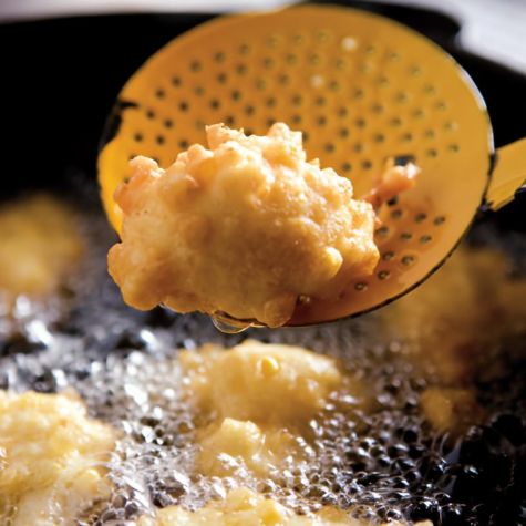 Gently drop the batter by heaping tablespoonfuls into the hot oil, being careful not to crowd the pan. Fry until browned on one side, about 2 minutes. Flip the fritters over and fry until golden, puffed and cooked through, 2 to 3 minutes more. Be careful, as the hot oil may splatter. Using a slotted spoon, transfer to the prepared rack(s) to drain. Repeat with the remaining batter. Transfer the hot fritters to a napkin-lined basket and serve immediately with the lime wedges. Makes about 24 fritters.