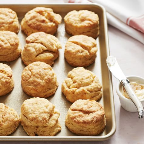 It seems there’s an “official day” for just about everything, and May 14 is National Buttermilk Biscuit Day—but why celebrate just once a year? With this easy recipe in your repertoire, you can whip up fluffy, high-rising biscuits anytime you like. Along with all-purpose flour, we toss some cornmeal into the dough for a hearty texture and a bit of crunch. Enjoy these biscuits warm from the oven with honey butter and flaky sea salt for sprinkling on top.