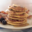 Butter a griddle or large fry pan or spray with nonstick cooking spray, and heat over medium heat. Using a batter dispenser, dispense 2 Tbs. batter for each johnnycake onto the griddle; sprinkle each with 2 tsp. pecans and 3 blackberry halves. Cook until golden underneath, 1 to 2 minutes. Flip the johnnycakes and cook until golden underneath, 1 to 2 minutes more. Serve immediately.