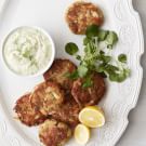 In a large fry pan over medium heat, warm the oil until shimmering, about 2 minutes. Working in batches, cook the crab cakes, turning once, until brown and crispy, 4 to 5 minutes per side. Transfer to a paper towel–lined plate to drain and sprinkle with salt. Serve with lemon wedges and a dollop of tartar sauce. Makes 12 crab cakes.