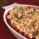 Bake the crumble until the topping is crisp and golden brown and the fruit filling bubbles slowly around the edges, 40 to 50 minutes. Serve warm with a scoop of ice cream or a dollop of whipped cream. Serves 8.