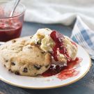Bake the scones until golden brown, 17 to 20 minutes. Transfer to a wire rack and let cool slightly. Serve warm or at room temperature, with the strawberry jam and butter on the side. Makes 8 scones.