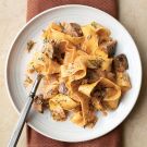 This rich pasta dish is a vegetarian riff on a Hungarian paprika-infused chicken dish. You can serve it on wide, fresh pasta ribbons, but dried egg noodles or spaetzle would also be wonderful. Don’t overcrowd the mushrooms when sautéing them or they won’t properly brown. Use a very large (about 14-inch/35-cm) pan or cook them in batches to avoid crowding.