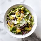 To create this wintry salad, we combine raw brussels sprouts and radicchio with a tangy sour cream dressing and crisp polenta croutons. It’s perfect for your holiday table because, unlike a lettuce-based salad, the sturdy vegetables won’t wilt during a leisurely meal. To get a head start on your dinner prep, cook the polenta and refrigerate it for up to 3 days. Then cut into squares and brown them just before serving. A mandoline makes fast work of shaving the brussels sprouts into thin slices. Fried capers are optional but add a nice briny pop to the dish.