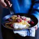 Filled with mascarpone whipped cream and topped with fresh raspberries, these crepes make a splurge-worthy brunch dish or a show-stopping dessert. Before you cook the crepes, be sure to let the batter rest, either at room temperature for 15 minutes or overnight in the refrigerator, so that the dry ingredients have time to absorb the liquid. This way the batter will have a thicker consistency and fewer air bubbles, which means the crepes will have a finer texture.