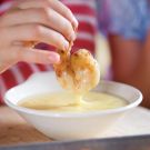 Bake for 5 minutes. Turn the shrimp over and continue to bake until golden and curled, 5 to 6 minutes more. Transfer to a platter and serve immediately with the lemony mayonnaise for dipping. Serves 4; makes about 1/2 cup mayonnaise.