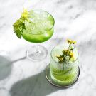 Strain the mixture into the rocks glass and add a handful of ice. Top with sparkling water and stir gently. Garnish with a mustard flower and serve immediately. Serves 1.