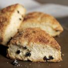 Cream scones—rich British tea biscuits—have a flaky, slightly cakelike texture. The secret to making tender scones is to use a very light touch, work quickly and put them in the oven immediately after cutting. Glaze them with cream and a sprinkle of cinnamon sugar or Demerara sugar for the finishing touch just before they go into the oven. Scones are traditionally served warm, split open and topped with chunky fruit preserves, clotted cream or lemon curd.