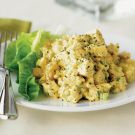 Both curry powder and crisp apples are classic partners for chicken, and here they are combined in a fresh, light salad tossed with a creamy dressing, perfect for a light supper or lunch. If you like, you can use purchased candied pecans in place of the toasted pecans.