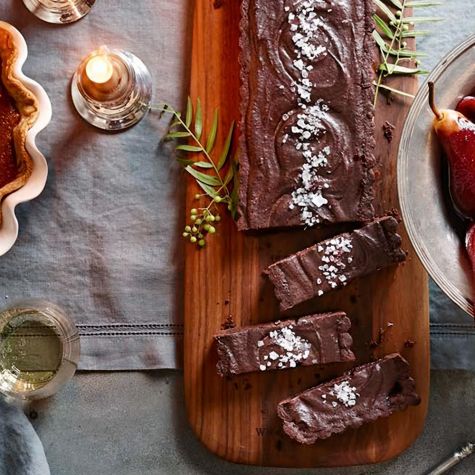 This dramatic dessert can be assembled a day ahead of serving, making it the perfect choice to prepare for a dinner party. Just remember to remove it from the refrigerator 15 to 30 minutes before serving to allow it come to the ideal temperature. Since this dessert is all about the chocolate, use a high-quality brand such as Scharffen Berger or Valrhona.