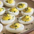 A big platter of deviled eggs, stuffed with an herb-flecked, fluffy, creamy filling, can round out countless comfort-food menus, from light lunches or suppers to picnics, potlucks or backyard barbecues. Use homemade mayonnaise in the filling, and your deviled eggs will be legendary among family and friends.
