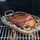 I bought the roasting pan a few years ago and finally used it to make this recipe on Mother's Day. The pork is tender and the seasoning enhances the grilling. I did not have the onions the recipe called for, so I used a package of frozen pearl onions, which worked great. My entire family enjoyed this delicious meal.