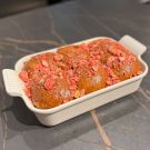 Roughly chop the remaining pink pralines and sprinkle on top of the brioche.