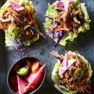 For succulent pulled pork, just add one of our premium starters to boneless pork shoulder and cook it low and slow for hours. Though the pork is delicious served on toasted buns, here we wrap it in crisp napa cabbage leaves for a fresh variation that can be served for dinner or passed around at a party. If your slow cooker doesn’t have a browning function, sear the pork in a Dutch oven or large fry pan over medium-high heat, then transfer it to your slow cooker and add the sauce.