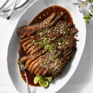 Brisket is a classic cut of beef in Jewish homes and was a staple in Eitan Bernath’s house growing up, says the award-winning chef, author and TV personality. His mother always made it on Fridays for the family to enjoy over the weekend. While the traditional braise prepared with stock, garlic and tomatoes is delicious, Eitan loves to update his brisket with favorite ingredients from his local Asian supermarket, including high-quality soy sauce and fresh ginger. “If you’ve never had soy sauce outside of the brands you find in large supermarkets,” Eitan says, “do yourself a favor and try a more authentic one. The difference in flavor is astounding!” He also adds rice vinegar and lots of garlic, plus fresh lime juice for sweetness and acidity. Easy and super flavorful, this brisket is great on sandwiches, with noodles or in a rice bowl with bok choy, Eitan’s personal favorite. The brisket also makes an impressive centerpiece for a Passover meal.