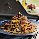 A delicious twist on the classic nachos, our version incorporates the traditional ingredients for fajitas: grilled skirt steak, bell peppers and onions. This hearty appetizer is cooked entirely on a backyard grill.