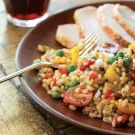 One of the world’s oldest grains, farro is a high-protein form of wheat with a nutty, earthy flavor. It is often used as a substitute for barley or rice in soups and can also be simply dressed with oil and lemon juice and served cold, as in this recipe.
