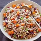 In this grain-based salad, sweet-and-sour dried cranberries contrast with smoked turkey and earthy butternut squash. Lemon juice and green onions add freshness, while the nutty taste of farro serves as a neutral flavor backdrop. The result is a dish with an inviting fall spirit and a wonderful layering of tastes and textures.