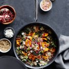 Combining both roasted and raw vegetables, this grain-based salad showcases the bounty of the autumn farmer’s market. Serve alongside roasted meats or as a hearty vegetarian entrée with a loaf of crusty bread.