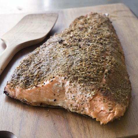 In this recipe, fennel seed, Mexican oregano and red pepper flakes are combined with black pepper to create a flavorful and aromatic rub that balances the richness of the salmon while complementing the hints of smoke that the fish acquires on the grill. Fennel seed adds a delicate, refreshing licorice taste, reminiscent of anise, while Mexican oregano contributes an intense herbal aroma and bold flavor, with hints of anise and sage. If you cannot find a large salmon fillet, use two smaller ones.