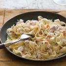 Roll out the pasta dough and cut into fettuccine. Let dry for 30 minutes or up to 3 hours.