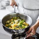 Sweet English peas and asparagus are abundant in the spring, so take advantage of their brief season with this pasta, which pairs these two ingredients with fragrant basil and mildly sweet Meyer lemons. If Meyer lemons aren’t available, you can use regular lemons, but reduce the quantities of juice and zest to adjust for their more tart flavor. Look for fresh fettuccine at well-stocked supermarkets and Italian delis, or make your own from scratch, if you prefer. Any other ribbons of fresh pasta, such as fettuccine or tagliatelle, would also work well.