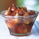 To serve the figs as a dessert, boil the liquid in the pan, stirring often, until it is a good sauce consistency, then pour over the figs. To serve the figs as a sweetmeat, reduce the liquid to a thick syrup, stirring constantly. Transfer the figs and syrup to a bowl or jar, cover and store in the refrigerator for up to 4 weeks. Remove from the refrigerator at least 1 hour before serving.