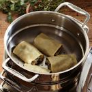 In this recipe from Chef Thomas Keller, sheets of fresh pasta are filled with a savory mixture of ground lamb, sautéed spinach and leeks, and pecorino romano cheese, then steamed until tender. Serve them alongside Chef Keller’s Herb-Crusted Rack of Lamb.