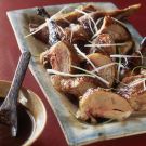 This version of roast duck is from China’s Guangdong Province. Through an elaborate but uncomplicated three-step process, the bird is marinated, then blanched, basted and refrigerated and finally roasted. The sequence results in a flavorful bird with crisp skin and succulent flesh.