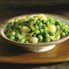 To shell peas, hold a pod over a large bowl, squeeze the pod slightly to split it open, and then run your thumbnail down along the seam to pop out the peas, capturing them in the bowl. Shell peas just before cooking to prevent them from drying out. If fresh peas are not in the market, frozen petite peas are a good substitute and will cook in the same amount of time as young peas.