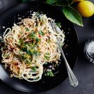Using a Philips pasta maker, you can make fresh pasta in about 15 minutes. Prepare a light, lemony sauce while the machine is mixing the ingredients and you can have dinner on the table in about half an hour.