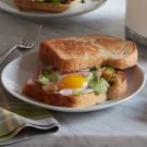 Spread 1 Tbs. of the salsa on each slice of toast. Top 2 of the toast slices with an egg and sprinkle lightly with salt and pepper. Top each egg with the radishes, cilantro and pickled onions, dividing them evenly. Cover each sandwich with a remaining slice of toast, salsa side down, and serve immediately. Serves 2.