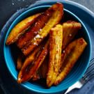 Extremely popular throughout the Caribbean and much of Central America, fried plantains are also ubiquitous in Cuba, where they might be made using green plantains or ripe ones, cut into thick wedges or very thinly sliced to make crisp chips. Serve the plantains alongside braised chicken as a side dish, or serve them with beer or cocktails for an addictive appetizer at a Cuban-themed dinner party.