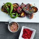 A simple side of grilled vegetables turns into something special when they are tossed with Roy Choi’s Garlic Everything Sauce, a versatile blend of garlic, sesame and gochujang chile paste. Vary the recipe according to whatever vegetables look best at your market.
