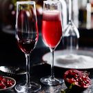Here, a kir royale, a festive sparkling drink made with Champagne and crème de cassis, or black currant liqueur, gets dressed up for the holidays with the addition of fresh ginger and pomegranate seeds.