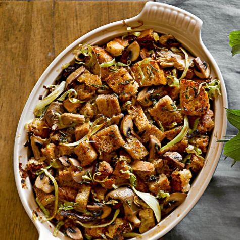 This gluten-free stuffing makes a great vegetarian side dish for your Thanksgiving feast. It’s prepared with our focaccia stuffing mix, crafted by a bakery that is dedicated to gluten-free baking. To amp up the flavor, we add both fresh and dried mushrooms, along with fennel and leeks.