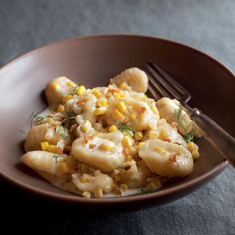 Gnocchi will always be on our menu in some fashion, says Chef Michael Hudman of Hog & Hominy. For me, making the little potato dumplings is a form of meditation; everything else falls away. This recipe, my favorite of all our gnocchi preparations, reminds me of Maw Maw, who always cooked her corn in sweet milk, removed the kernels from the cobs, and then cooked the cobs in the milk to impart even more corn flavor to the sauce. Eating this dish always takes me back to my childhood.