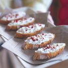 When ready to serve, spread each baguette toast with the cheese and shallot spread and top with several pink peppercorns. Serves 12 to 14.