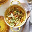 Let cool for 10 minutes. Garnish with goat cheese, Parmesan, basil and a few grindings of pepper and serve immediately. Serves 6.