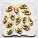 Here, Giada De Laurentiis, author of seven New York Times bestselling books, shares a recipe from her most recent book, Happy Cooking. She explains that both the crostini and the cheese mixture can be prepared up to 2 days in advance of serving them, a huge help for busy hosts. Store the crostini in an airtight container at room temperature, and cover and refrigerate the cheese mixture. Let the cheese mixture stand at room temperature for 1 hour to soften slightly before spreading over the crostini.