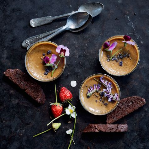 The simple French custard known as pot de crème, or “pot of cream,” makes a comforting ending to a meal. This version is from Noci Sonoma, a modern farmstead near Healdsburg, California, where they make this dessert with sheep's milk from nearby Haverton Hill Creamery. We've used goat's milk or cow's milk here since they are more readily available, but Noci's culinary director recommends using sheep's milk if you can find it.