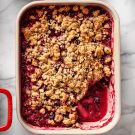 Transfer the baking dish to a wire rack and let cool for 20 minutes. Serve the crumble with Greek yogurt, honey and flaky sea salt. Serves 6.