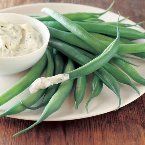 Whipping anise-scented tarragon and pleasantly tart crème fraîche until airy and light elevates this take on a crudités-and-dip platter. Cook the green beans until just tender, so their summer-fresh flavor is retained and they are firm enough to dip in the savory sauce.
