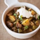 Commonly called simply chili verde, or “green chili,” this easy-to-make, delicious dish is one of New Mexico’s most popular traditional stews. Regional markets sell the state’s green chilies both fresh and frozen. If you cannot find them, substitute Anaheims or poblanos.